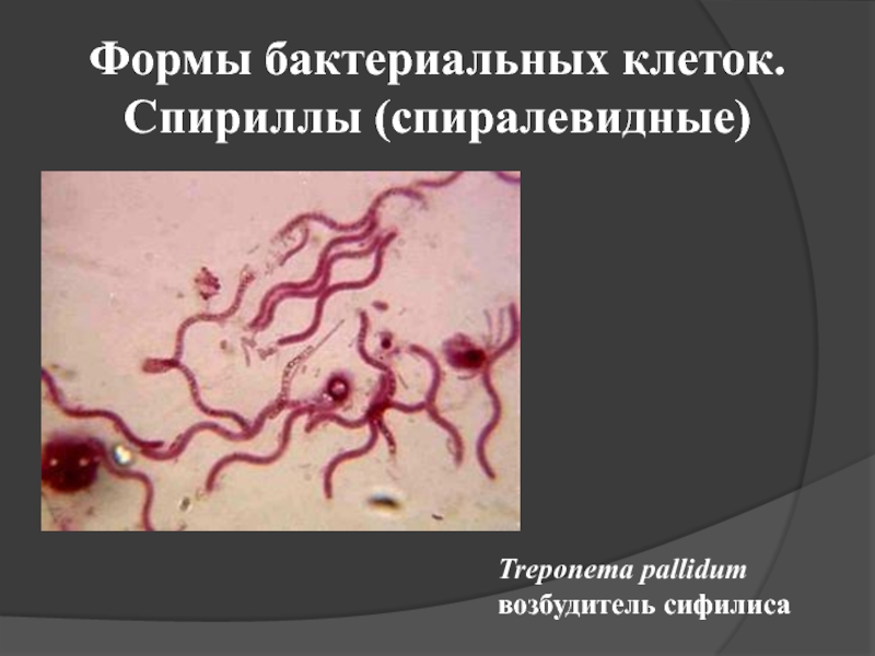 Формы бактериальных клеток. Спириллы (спиралевидные)Treponema pallidum возбудитель сифилиса