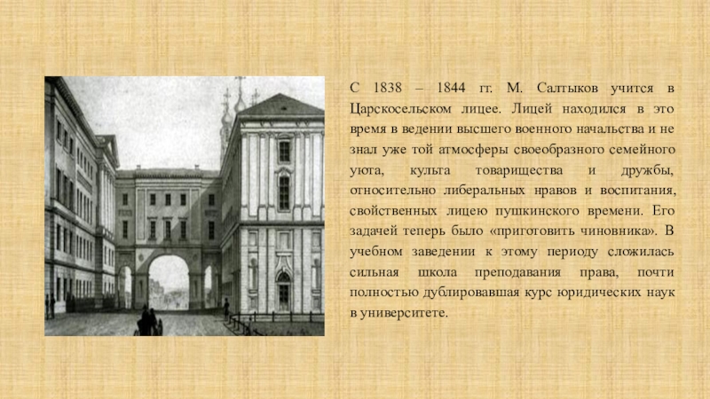 Слайд 3С 1838 – 1844 гг. М. Салтыков учится в Царскосельском