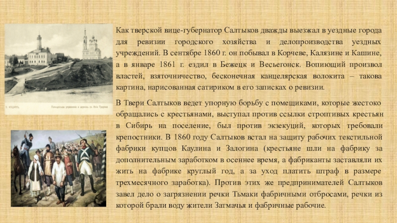 Слайд 12Как тверской вице-губернатор Салтыков дважды выезжал в уездные города для