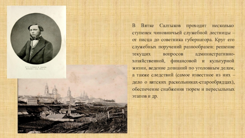 Слайд 7В Вятке Салтыков проходит несколько ступенек чиновничьей служебной лестницы –
