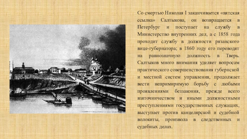 Слайд 9Со смертью Николая I заканчивается «вятская ссылка» Салтыкова, он возвращается