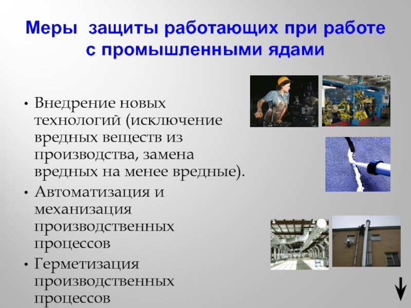 Слайд 12Меры защиты работающих при работе с промышленными ядами
