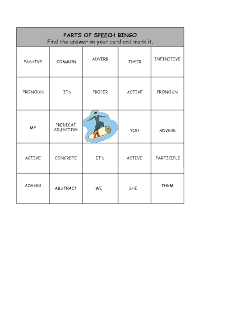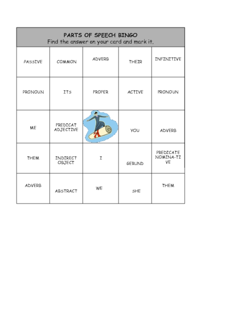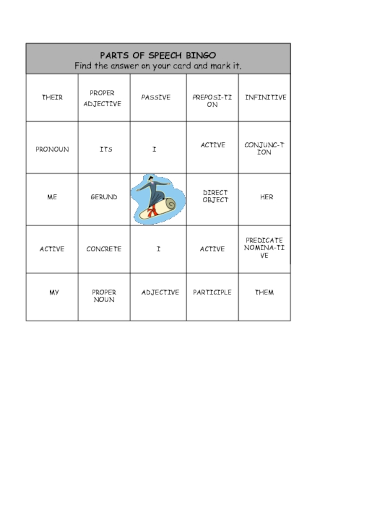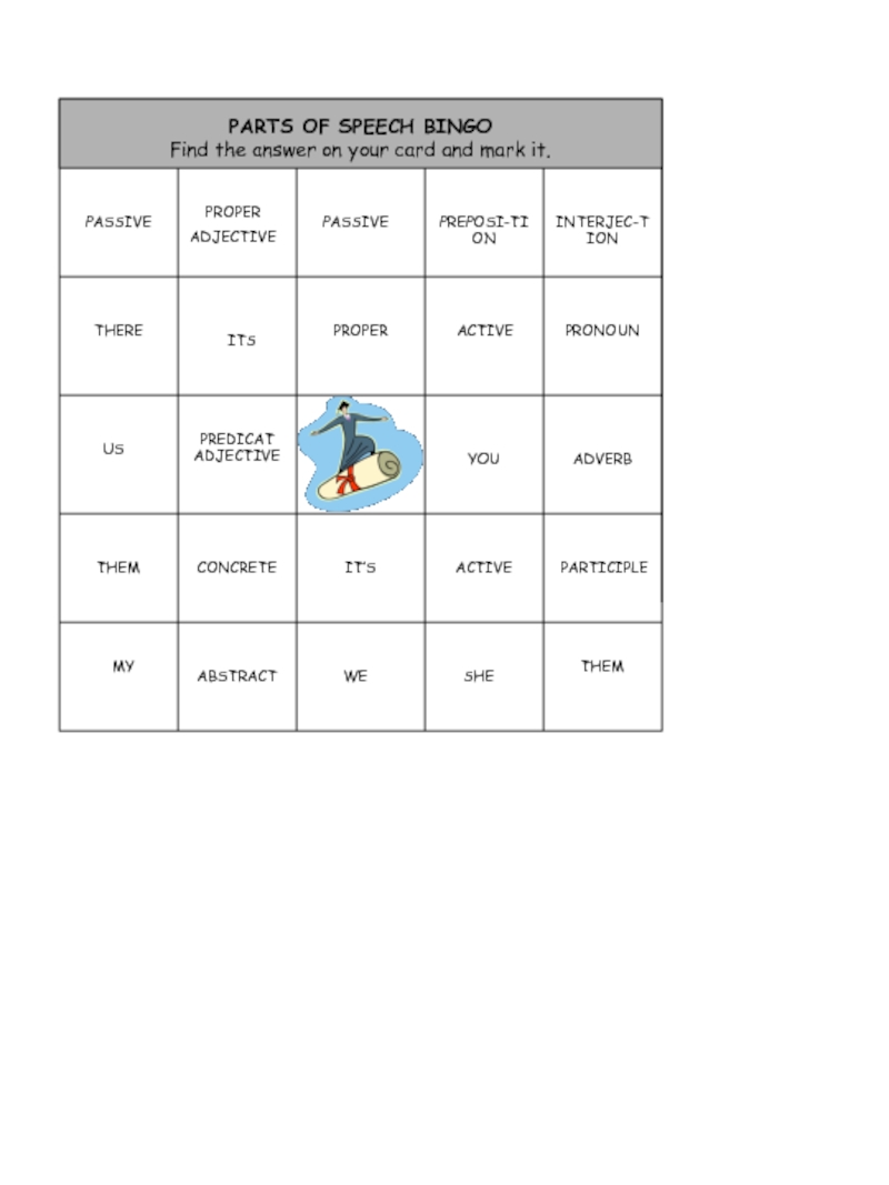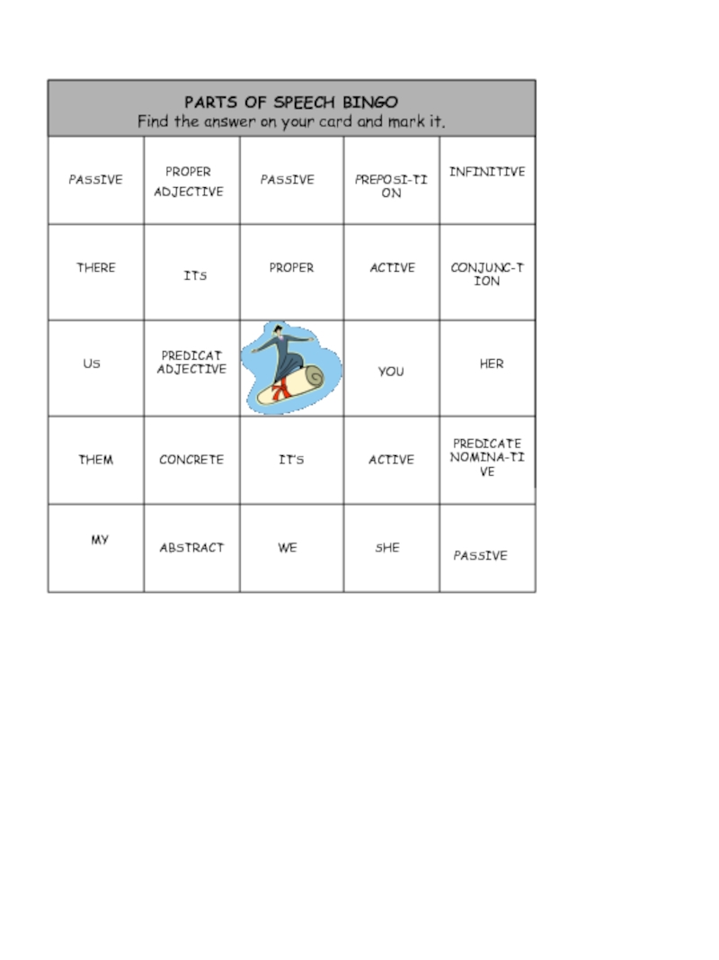 YOUPREDICAT ADJECTIVEIT’STHEMUSTHEREACTIVECONCRETEPROPERITSACTIVEPROPERADJECTIVEPREPOSI-TIONPASSIVEPASSIVEHERCONJUNC-TIONPREDICATE NOMINA-TIVEINFINITIVEPROPER NOUNPARTICIPLEADJECTIVEADVERBTHEM