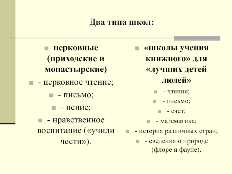 В конце X в. появляются первые специальные школы для распространения грамотности. Появление первых школ в Киевской Руси было вызвано, прежде всего, потребностями духовенства.