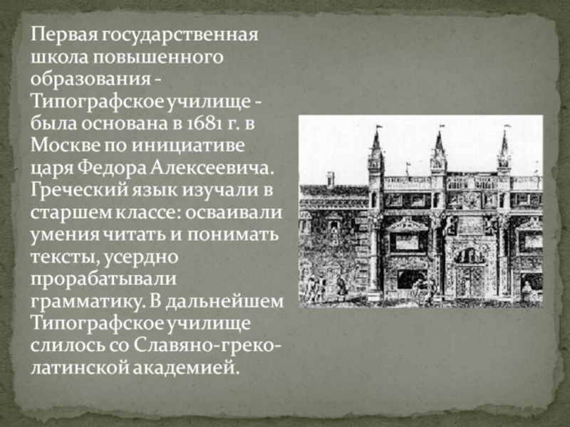 Слайд 16Первая школа, где преподавали на славянском языке, была открыта Кириллом