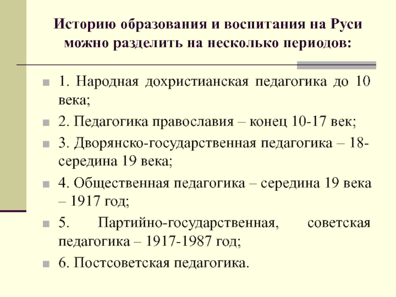 5. Партийно-государственная, советская педагогика – 1917-1987 год;