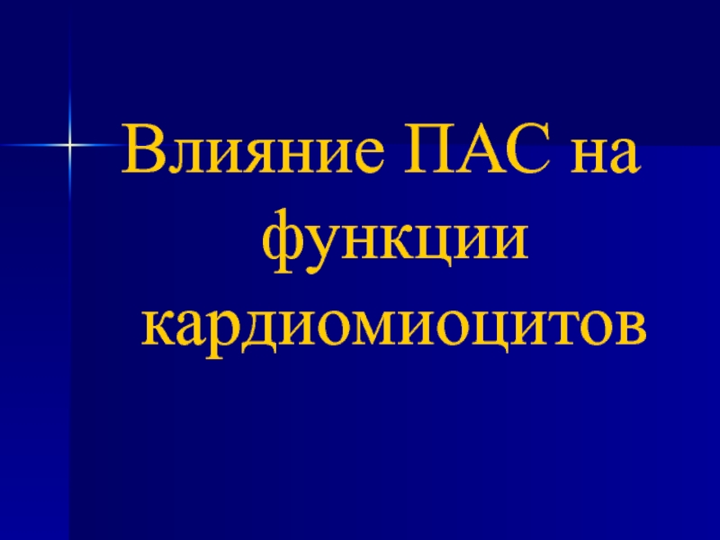 Слайд 13Влияние ПАС на функции кардиомиоцитов