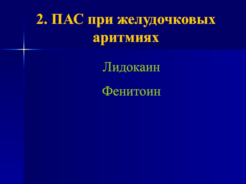 2. ПАС при желудочковых аритмияхЛидокаинФенитоин
