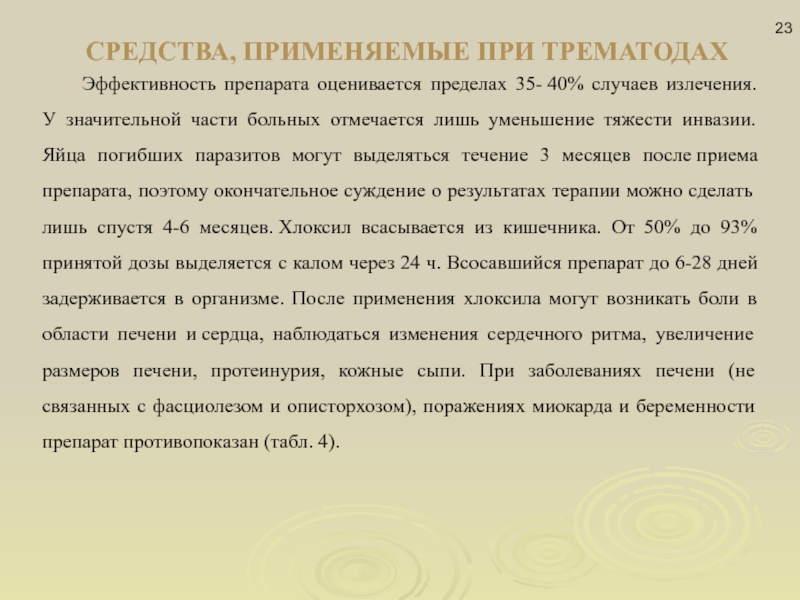 Слайд 23СРЕДСТВА, ПРИМЕНЯЕМЫЕ ПРИ ТРЕМАТОДАХ