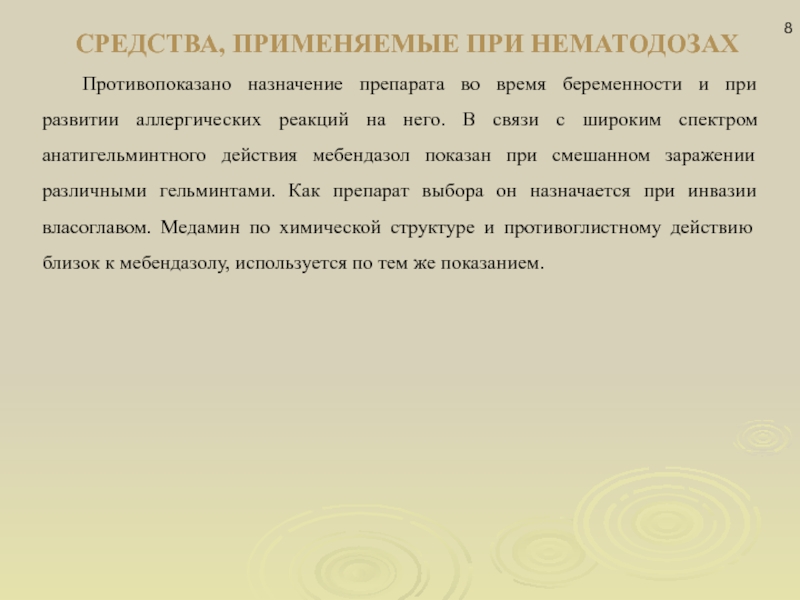Слайд 8СРЕДСТВА, ПРИМЕНЯЕМЫЕ ПРИ НЕМАТОДОЗАХ