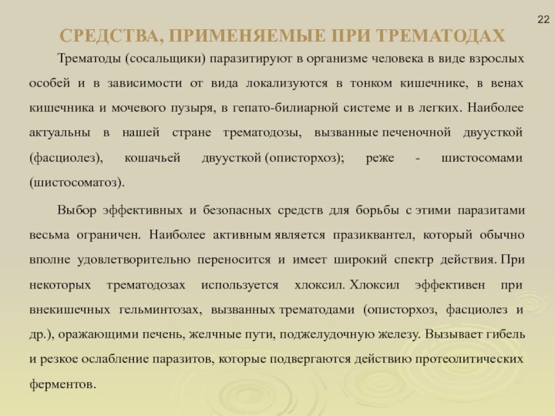 Слайд 22СРЕДСТВА, ПРИМЕНЯЕМЫЕ ПРИ ТРЕМАТОДАХ