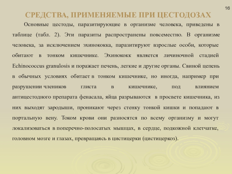 Слайд 16СРЕДСТВА, ПРИМЕНЯЕМЫЕ ПРИ ЦЕСТОДОЗАХ