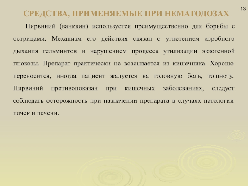 Слайд 13СРЕДСТВА, ПРИМЕНЯЕМЫЕ ПРИ НЕМАТОДОЗАХ