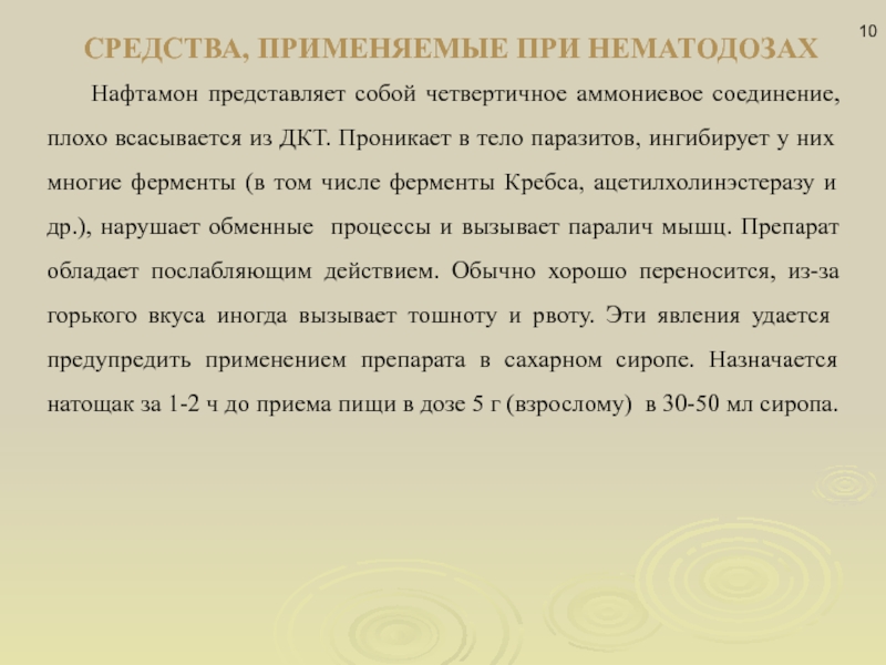 Слайд 10СРЕДСТВА, ПРИМЕНЯЕМЫЕ ПРИ НЕМАТОДОЗАХ