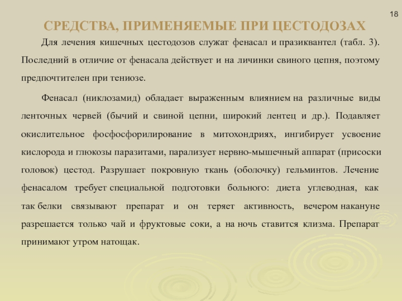 Слайд 18СРЕДСТВА, ПРИМЕНЯЕМЫЕ ПРИ ЦЕСТОДОЗАХ