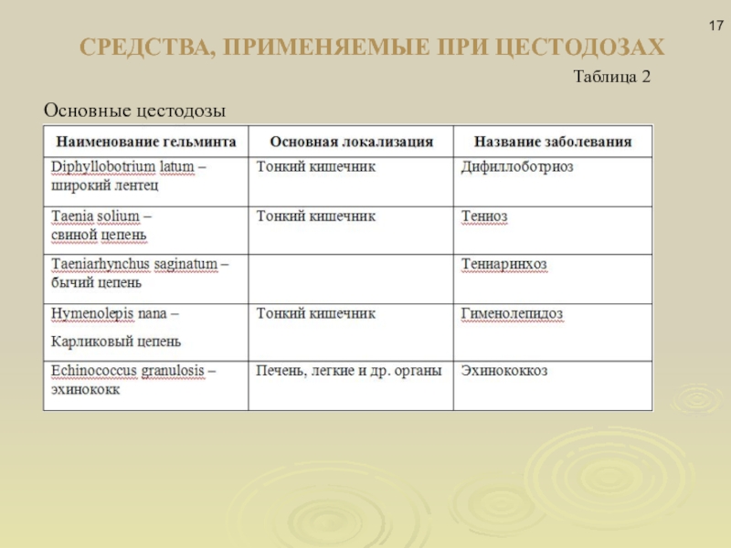 Слайд 17СРЕДСТВА, ПРИМЕНЯЕМЫЕ ПРИ ЦЕСТОДОЗАХ