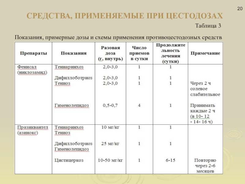 Слайд 20СРЕДСТВА, ПРИМЕНЯЕМЫЕ ПРИ ЦЕСТОДОЗАХ