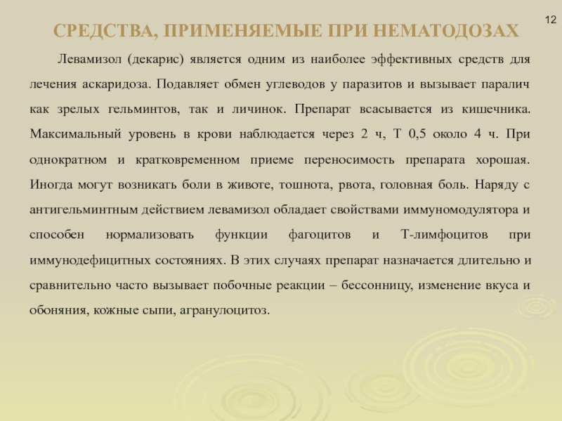Слайд 12СРЕДСТВА, ПРИМЕНЯЕМЫЕ ПРИ НЕМАТОДОЗАХ