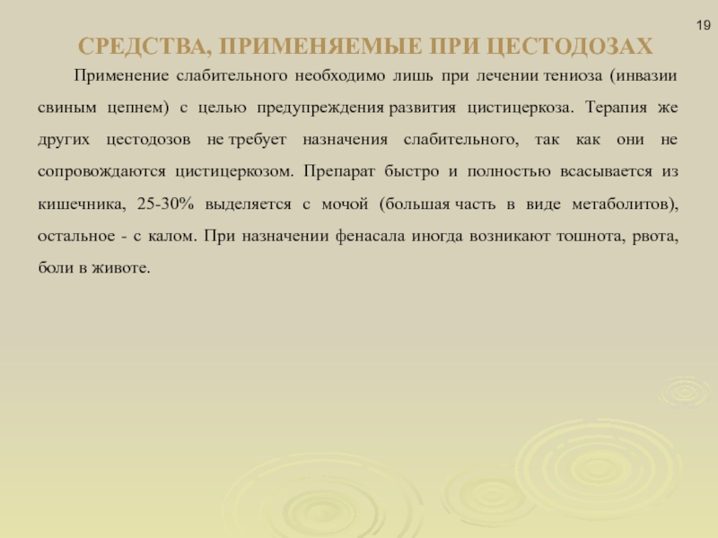 Слайд 19СРЕДСТВА, ПРИМЕНЯЕМЫЕ ПРИ ЦЕСТОДОЗАХ