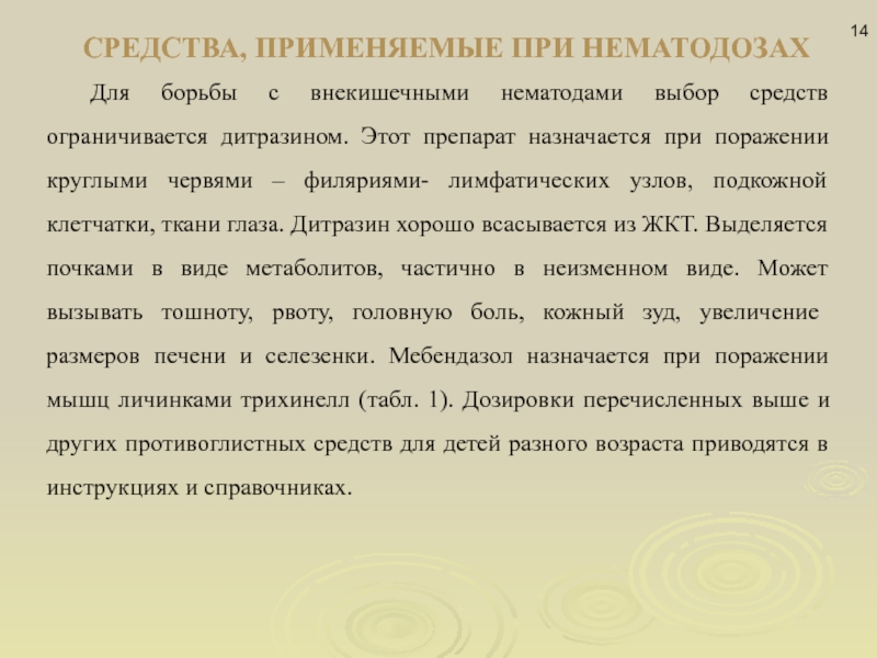 Слайд 14СРЕДСТВА, ПРИМЕНЯЕМЫЕ ПРИ НЕМАТОДОЗАХ