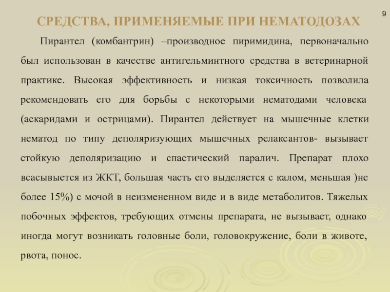 Слайд 9СРЕДСТВА, ПРИМЕНЯЕМЫЕ ПРИ НЕМАТОДОЗАХ