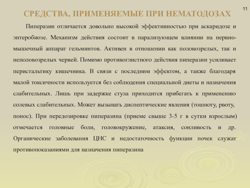 Слайд 11СРЕДСТВА, ПРИМЕНЯЕМЫЕ ПРИ НЕМАТОДОЗАХ