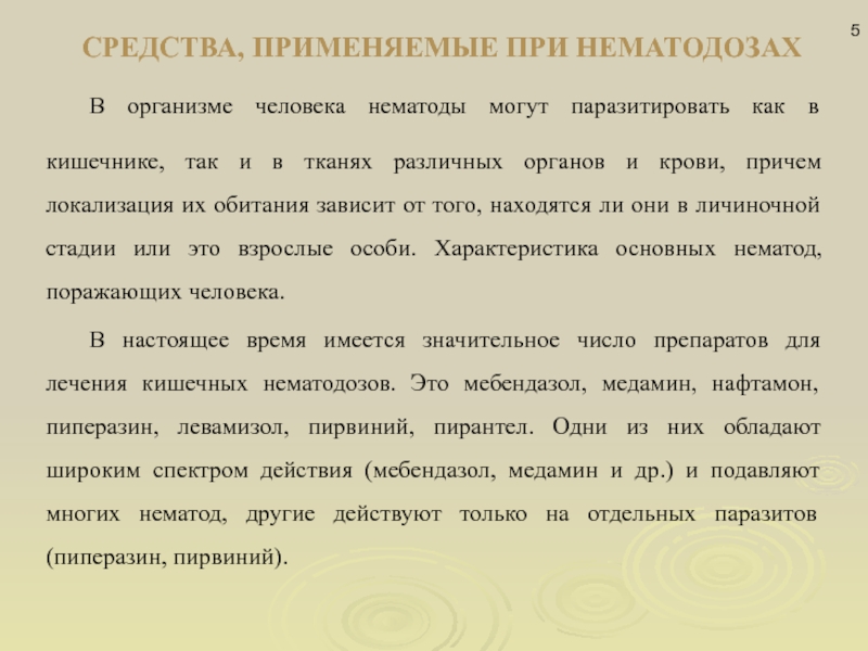 Слайд 5СРЕДСТВА, ПРИМЕНЯЕМЫЕ ПРИ НЕМАТОДОЗАХ
