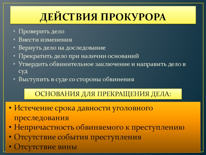 Слайд 16ДЕЙСТВИЯ ПРОКУРОРА
