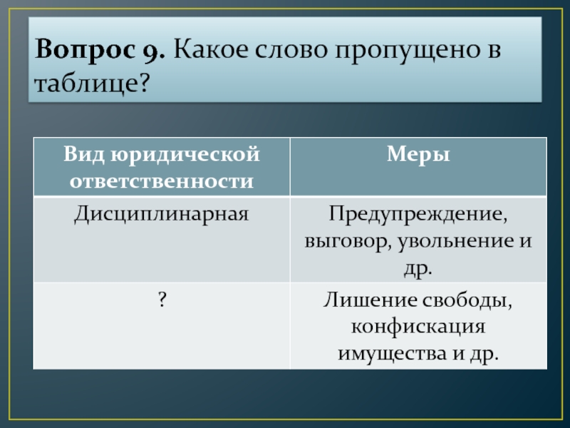 Слайд 31Вопрос 9. Какое слово пропущено в таблице?