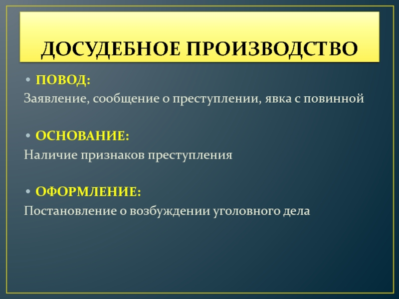 Слайд 13ДОСУДЕБНОЕ ПРОИЗВОДСТВО