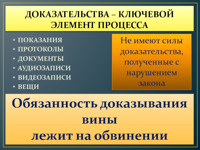 Слайд 10ДОКАЗАТЕЛЬСТВА – КЛЮЧЕВОЙ ЭЛЕМЕНТ ПРОЦЕССА
