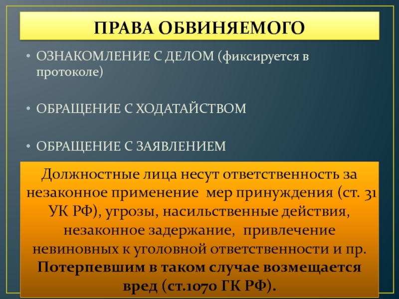 Слайд 15ПРАВА ОБВИНЯЕМОГО