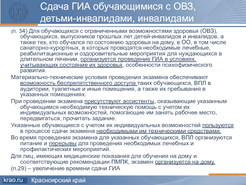 Слайд 38Сдача ГИА обучающимися с ОВЗ, детьми-инвалидами, инвалидами
