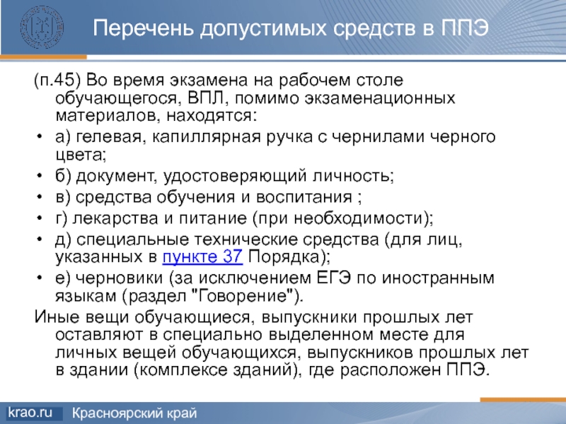 (п.45) Экзамен сдается обучающимися, ВПЛ самостоятельно, без помощи посторонних лиц.