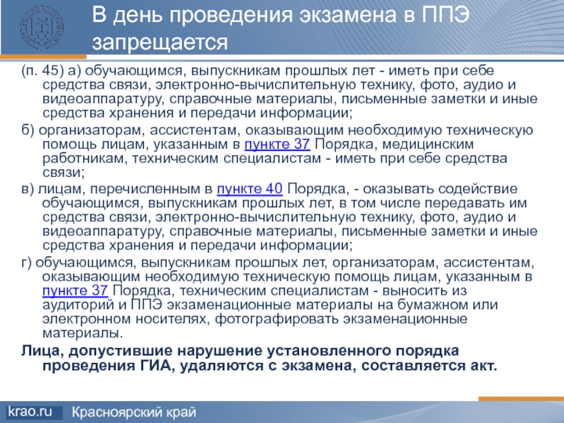 Слайд 33В день проведения экзамена в ППЭ запрещается (п.42)