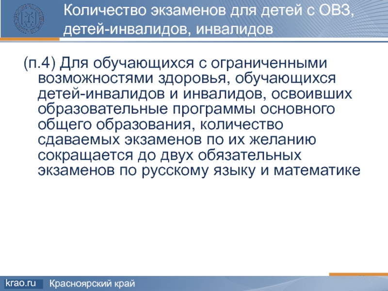 программы основного общего образования, количество сдаваемых экзаменов по их желанию сокращается до двух обязательных экзаменов по русскому языку и математике