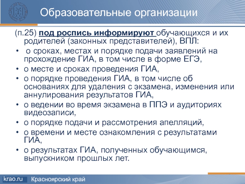 (п.25) под роспись информируют обучающихся и их родителей (законных