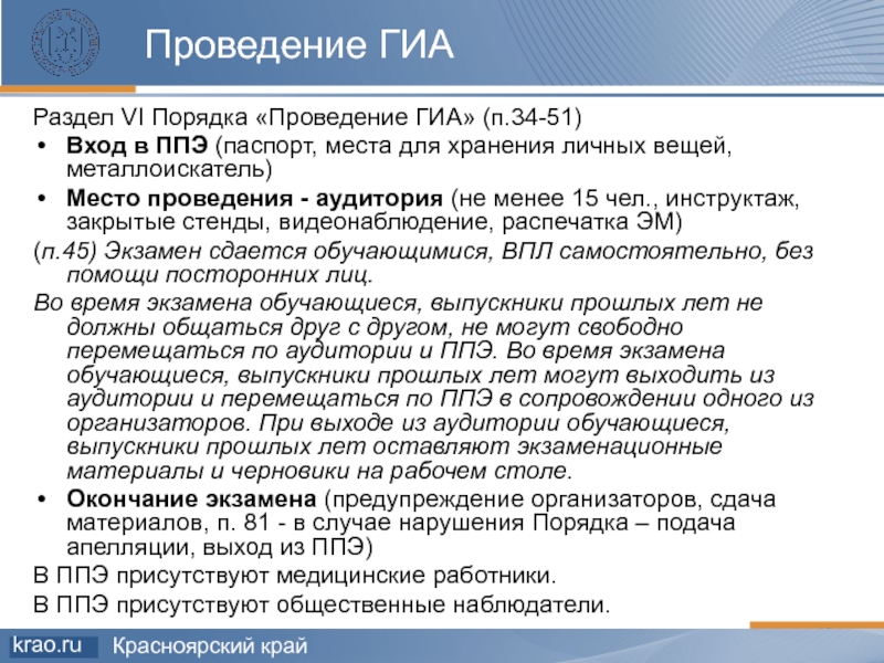 Раздел VI Порядка «Проведение ГИА» (п.34-51)