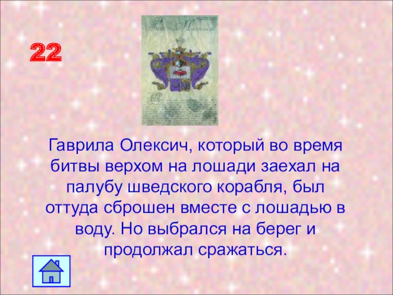 на палубу шведского корабля, был оттуда сброшен вместе с лошадью