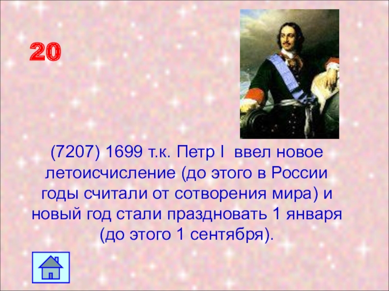 (7207) 1699 т.к. Петр I ввел новое летоисчисление (до этого