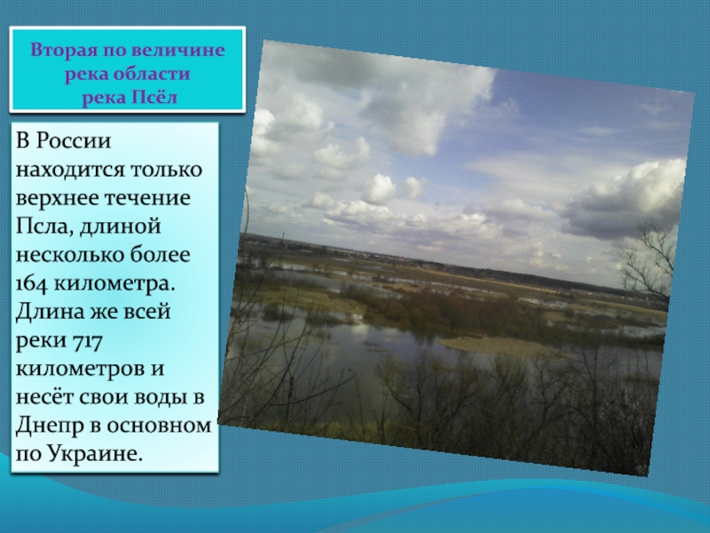 Слайд 6Река Псёл течет в южной части области. Свое начало она