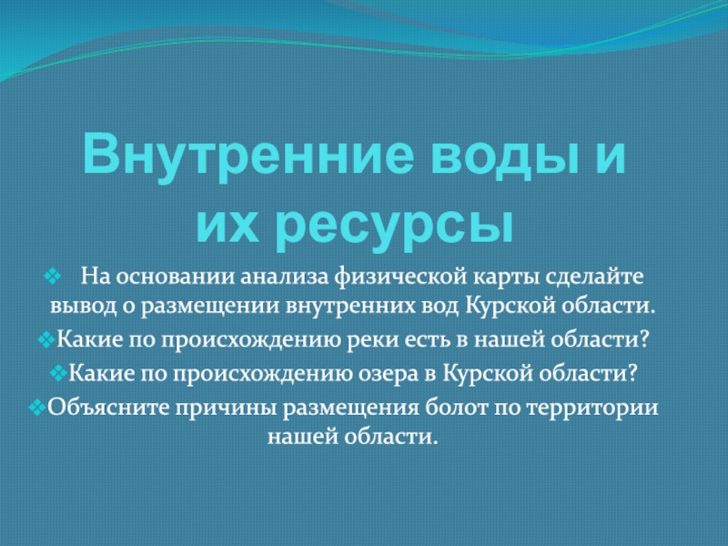 физической карты сделайте вывод о размещении внутренних вод Курской области.