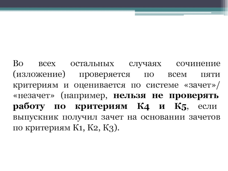 Слайд 9Во всех остальных случаях сочинение (изложение) проверяется по всем пяти