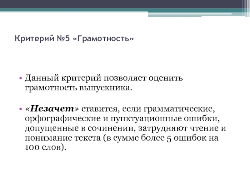 Слайд 20Критерий №5 «Грамотность»