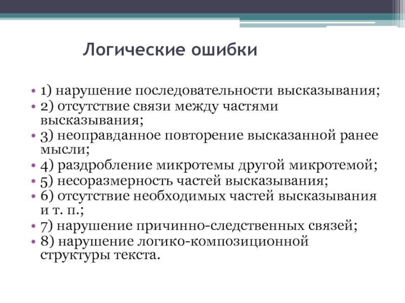 8) нарушение логико-композиционной структуры текста.