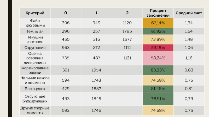 10 критериев проверки (большая точность индикации проблем с формулой оценки)