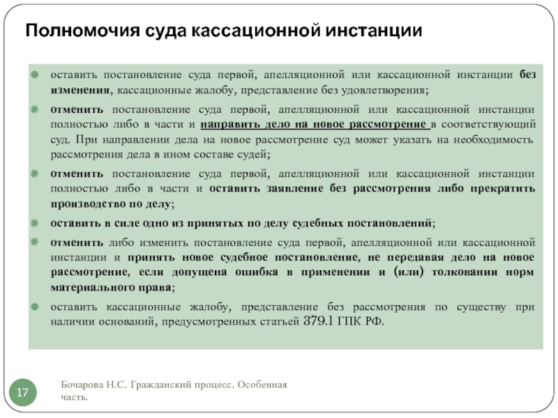 Слайд 17Полномочия суда кассационной инстанции