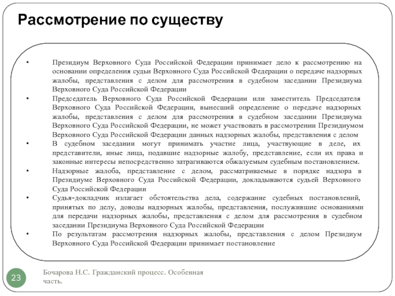 Слайд 23Рассмотрение по существу