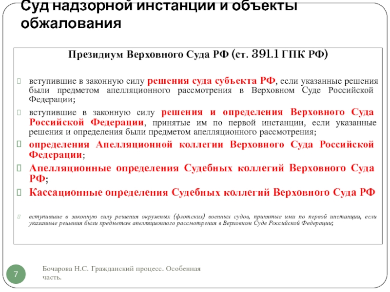 Слайд 7Суд надзорной инстанции и объекты обжалования