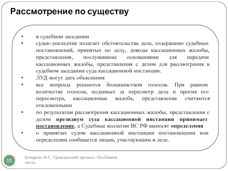 Слайд 15Рассмотрение по существу